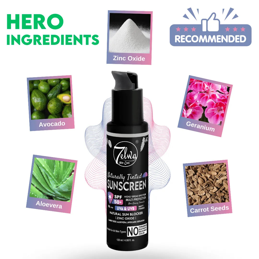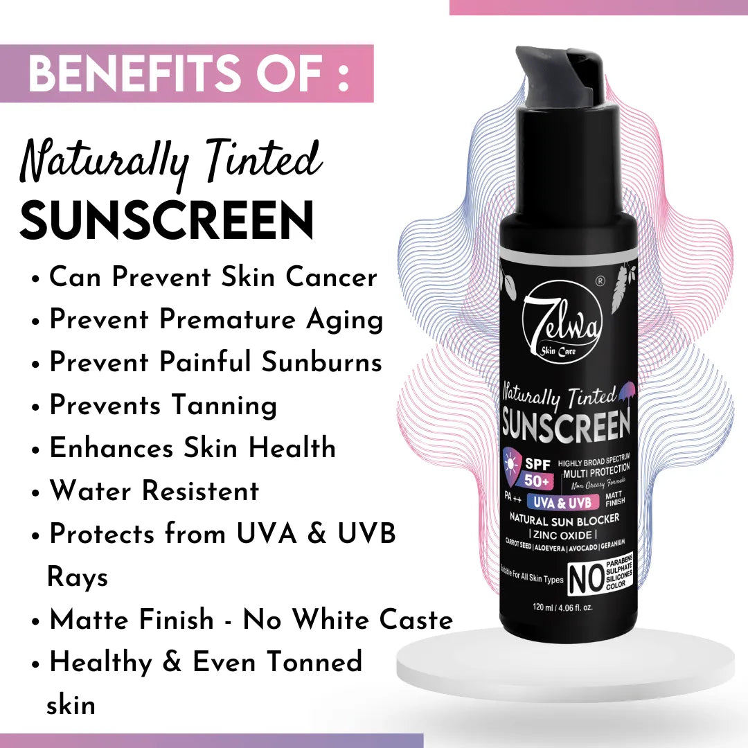 7elwa Naturally Tinted Sunscreen | SPF 50 | PA++ | Multi Protection | Non Greasy & Matte Finish | 120 ml